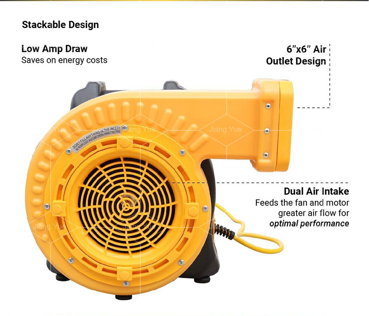 It has amazing power. It comes in two horsepower options, 2 HP and 2.1 HP. Operating at 3100 r/min, it provides strong airflow. This makes it ideal for inflating various items quickly. The blower is designed for both commercial and residential use, demonstrating high work efficiency. You can depend on its power for any inflatable setup. The motor's performance is unmatched. In terms of working efficiency, the motor meets the demands of busy inflatable businesses. Whether you need a bounce house blower or a slip 'n slide, it excels. Is it a dependable choice for every inflatable setting? Expect quick and efficient inflation each time.