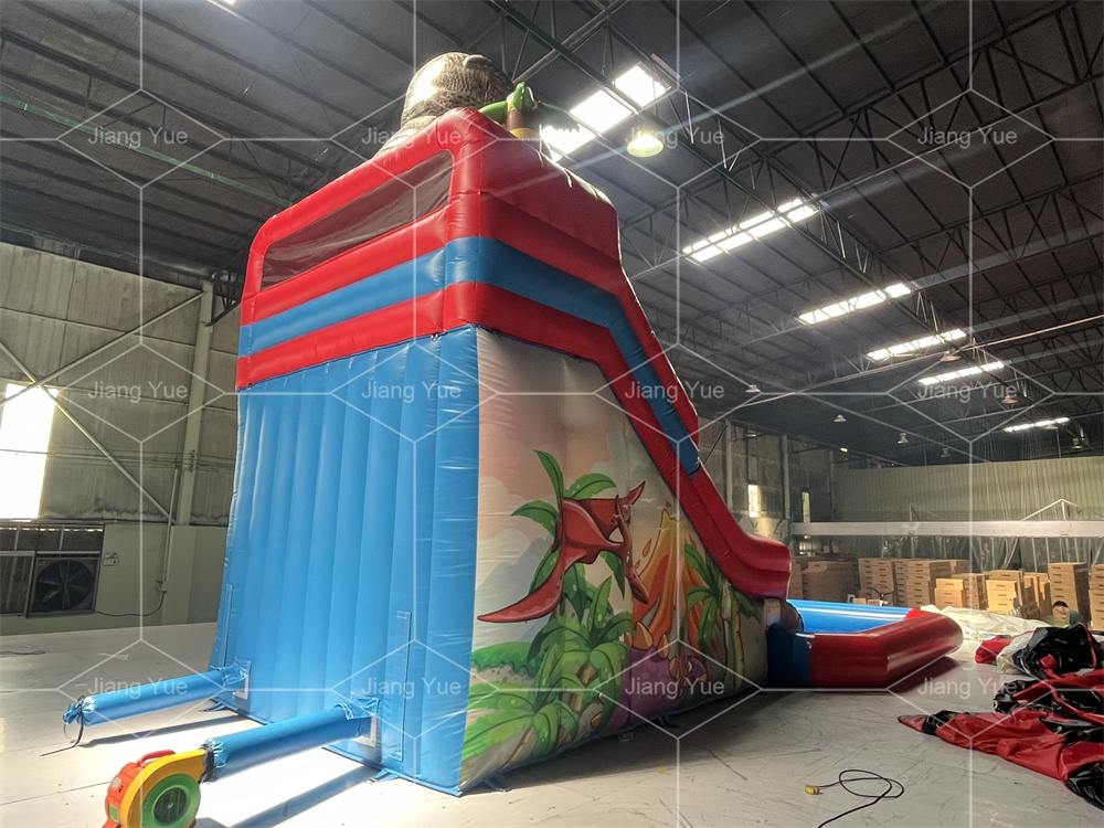 Dinosaur Inflatable Slide Customized Double lane Water Slide with Pool