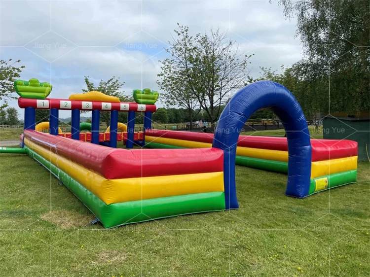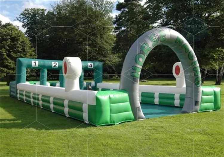Alright horse fans, it’s race day! Jiang Yue-Inflatables is starting a new tradition of horse races with this fun, competitive bouncy horse racecourse track. It most definately is an awesome addition to have!