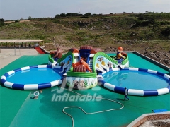 The giant amusement park is composed of 2 metal frame pool,3 lane metal frame pool, inflatable water park, and a giant inflatable obstacle course.And all the sizes of each product can be customized as your area with our designers' help.
