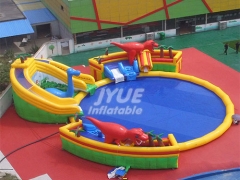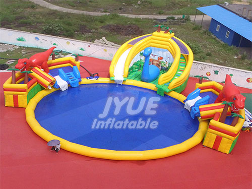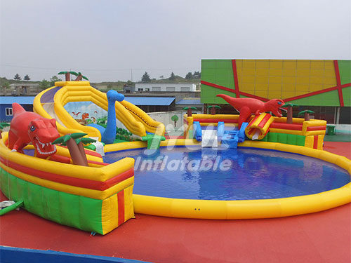 Outdoor Inflatable Water Park With Slide Giant Dinosaurs Amazing Water Park