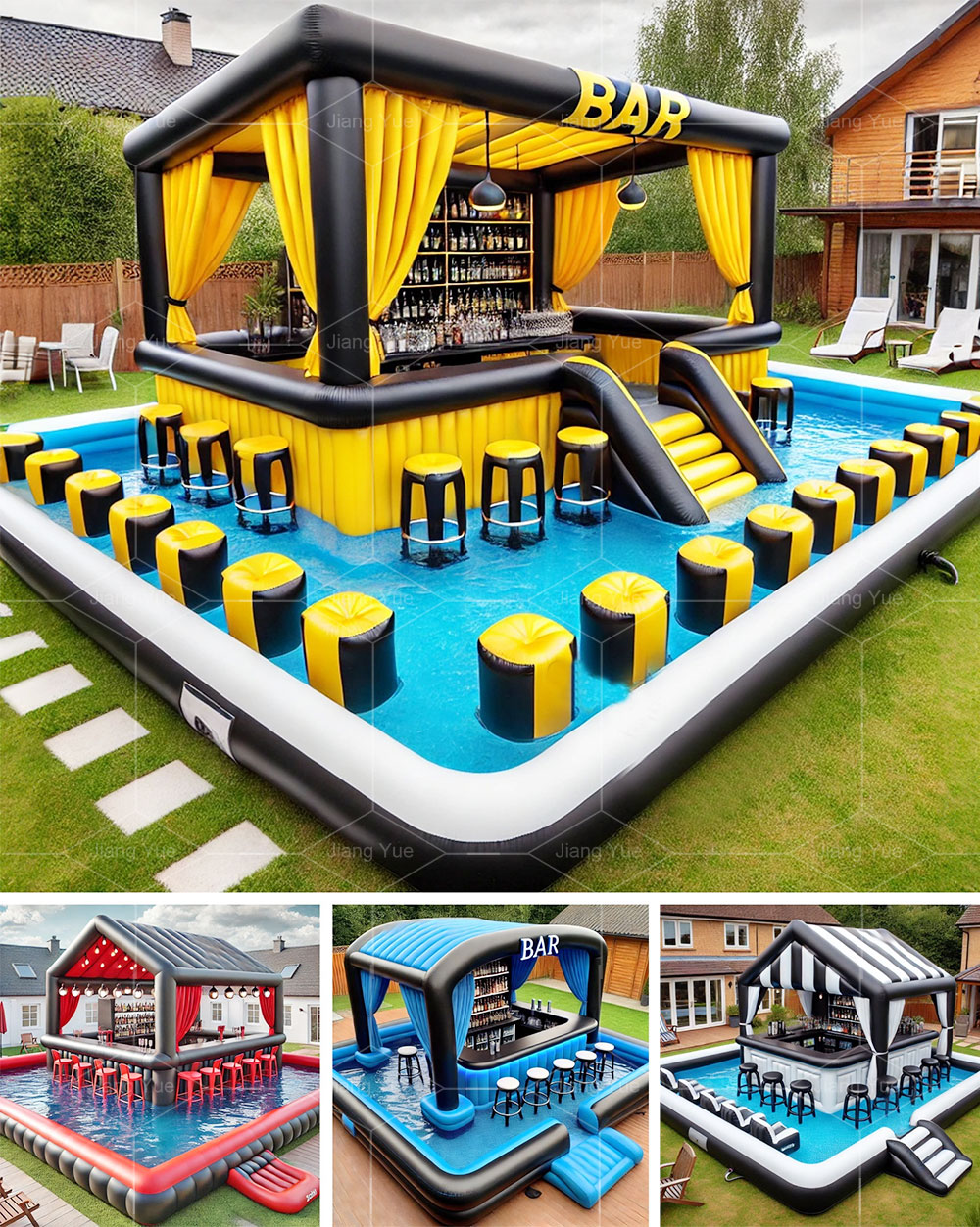 Turn your backyard into the ultimate party destination with our Inflatable Pool Bar! Measuring a spacious 20ft wide x 20ft long x 10ft high, this inflatable bar with pool is designed for fun, relaxation, and convenience. Whether you're hosting a summer pool party, a tropical-themed event, or just enjoying a laid-back day in the sun, this inflatable pool bar is a game-changer. Customize with your color choices and add your logo for no additional cost.