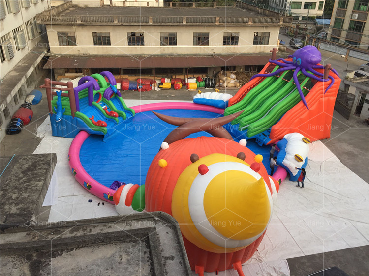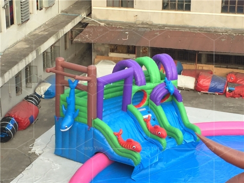 This commercial adult inflatable water park we made is for commercial use or home use, and it can be widely placed in outdoor occasions like parks, gardens or backyards, schools or some other playing centers, etc; People will enjoy themselves in this wonderful paradise. Inflatable slides are those slides that can be used in both wet and dry situation. There are many different sizes,themes and colors. Some of them will have a water pool attached to cool summer heat off.