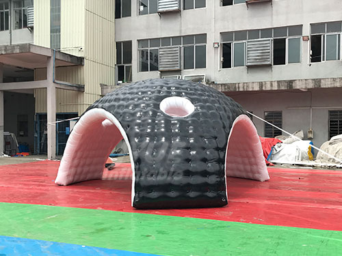 Inflatable dome tent is one of the most widely-used inflatable advertising tent. One of its features can be guessed from its name. Its top looks round when eight air columns start from the center point at the top and spread downwards. The few air columns make it more stable than other normal tents. A large water resistant, adumbral, durable and commercial grade tarpaulin is covered on the eight pillars. The logo of your company, the pictures of publicizing products, the purpose of the activity can be printed on the large tarpaulin which will make customers know more about the activity.