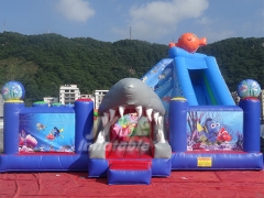 Inflatable fun city slides are always the combination of inflatable bounce and slide which can also be called inflatable bounce slide combo or bouncy slide. The inflatable paradise with bright color, three slides and a curved ladder is more suitable for kids. Climb to the top and slide down, then kids will fall on the bouncer which can protect children from hurt.