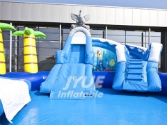 Both of children and adults will find there is a lot of fun when they playing inside it.We can swimming in the pool,climbing on the mountain then sliding down from the top.Otherwise,we will find that it is so miraculous we can play a lot of water floating toys in the big pool.