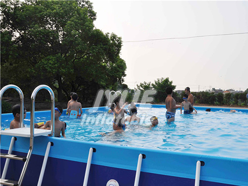 steel frame pool can accommodate kids of water toys, such as an inflatable boat, electric bumper boat, power paddler boat, water ball, water roller, and other water games, used in water parks, children centers, outdoor or indoor playground for renting, parties, commercial shows, open ceremony and so on.